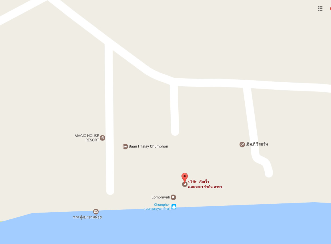 Lomprayah Chumporn (Thungmakham Noi Pier) 13/7 Moo 3, Hat Sai Ri Subdistrict, Mueang District, Chumphon Province 86120.