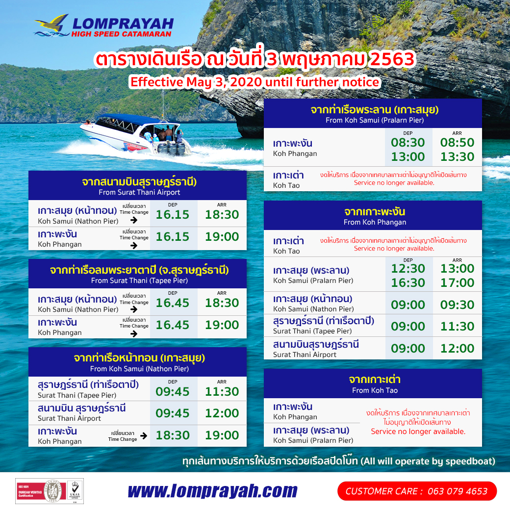 - 16:45 Surat Thani (Tapee Pier) - Koh Samui (Nathon Pier) - Koh Phangan