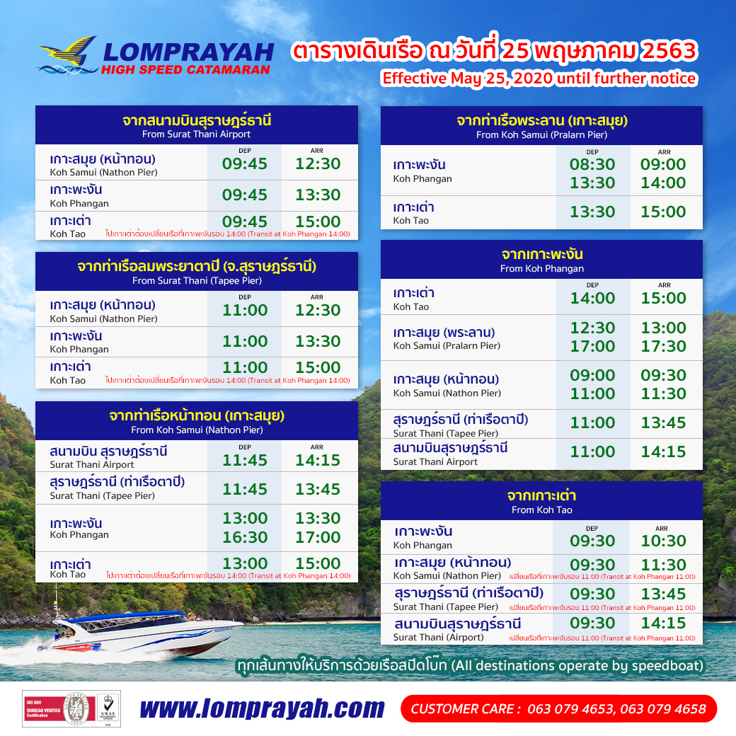 - 13:30 Koh Samui (Pralarn Pier) --> 14:00 Koh Phangan --> 15:00 Koh Tao