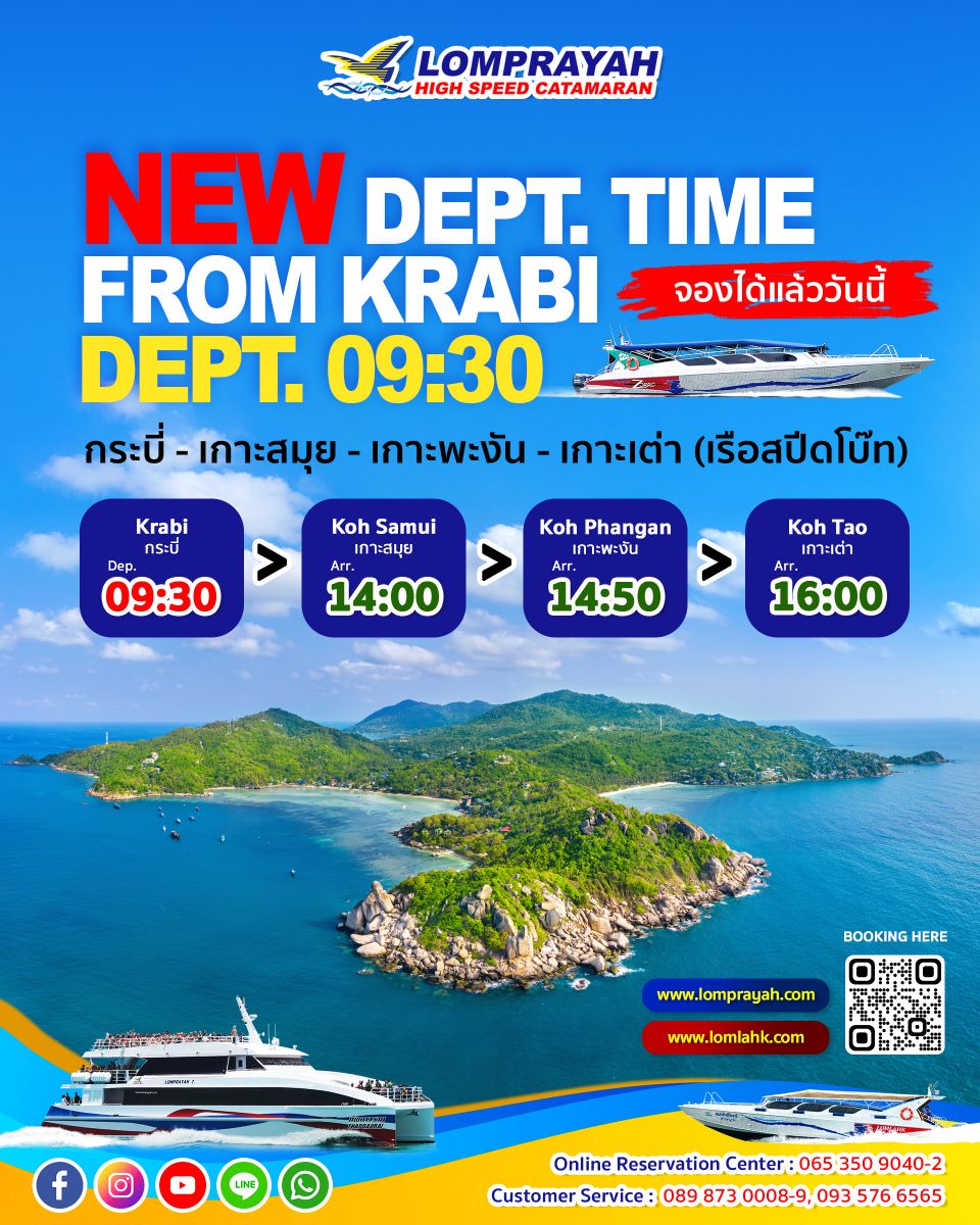 NEW Departure time from Krabi 09:30 to Koh Samui - Koh Phangan - Koh Tao (Speedboat)) 11 October 2023