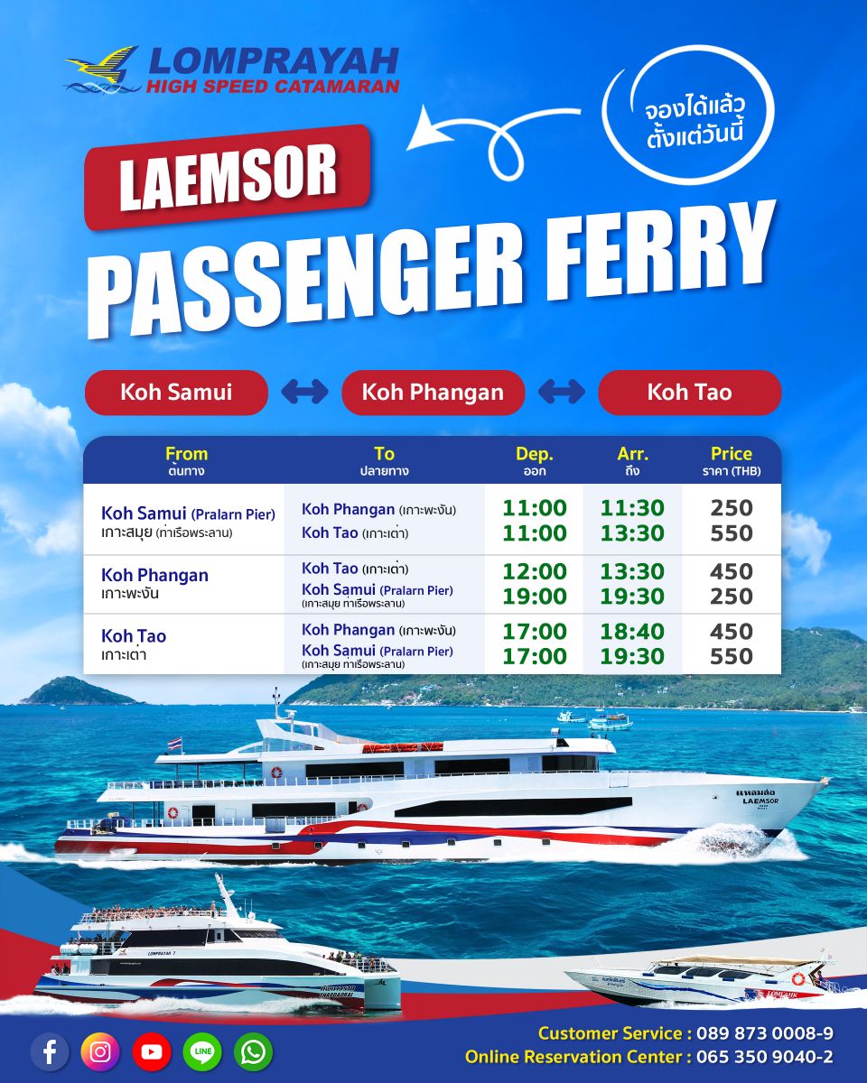 NEW Route LAEMSOR Passenger Ferry, Koh Samui - Koh Phangan - Koh Tao