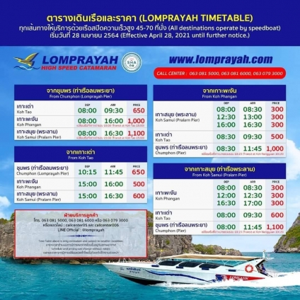 ปรับรอบเดินเรือเส้นทาง ชุมพร-เกาะเต่า-ชุมพร ตั้งแต่วันที่ 14 มิถุนายน 2564 เป็นต้นไป