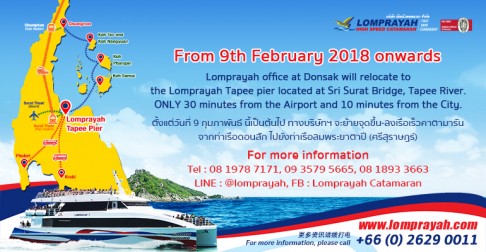 From 9th February onwards, our Lomprayah office at Donsak will relocate to the Lomprayah Tapee pier