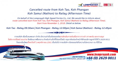 Cancelled route from Koh Tao, Koh Phangan, Koh Samui (Nathon) to Railay (Afternoon Time)