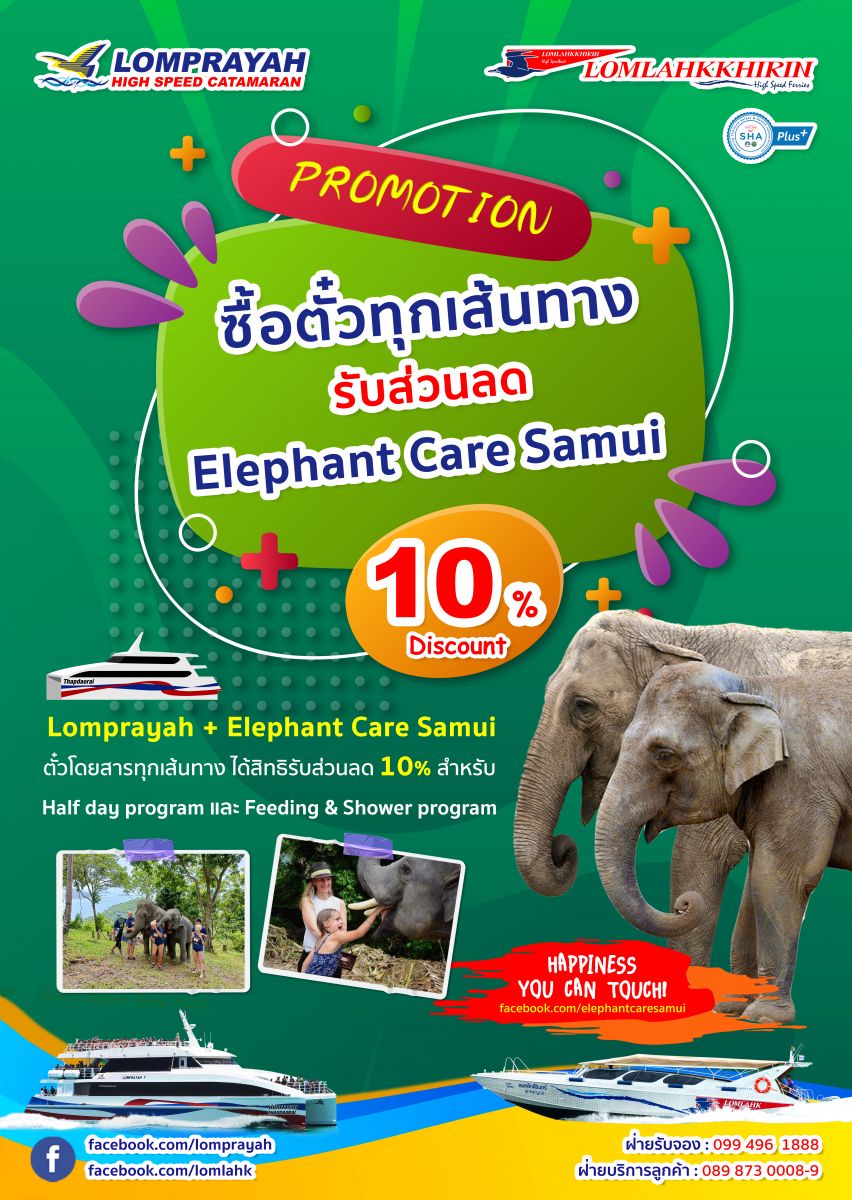Condition : Just show your Lomprayah booking or travel ticket. Get a discount 10% Special Elephant Care Koh Samui Program.